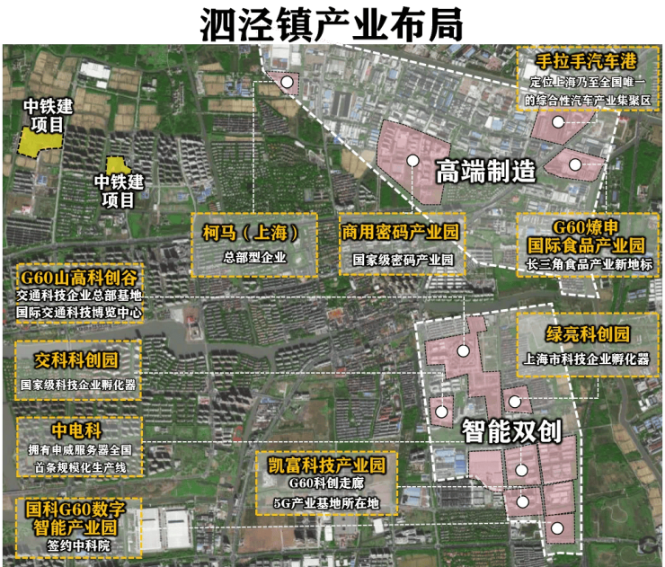 泗泾镇目标打造成为长三角G60科创走廊,特别是在大交通产业领域的区域互动共生、互融扩展的产城融合高质量发展示范区。同时,这将提升泗泾的板块形象,是泗泾崭新的城市天际线。