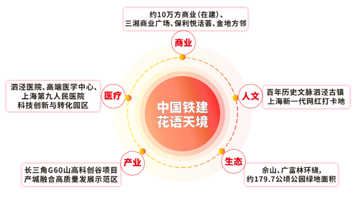 从目前来看,在上海近郊19km范围左右的几大新城板块,除了产品优秀外,还能满足地铁、地段、配套、发展等等维度需求的优质改善级项目,只有一盘——那就是位于泗泾板块9号线地铁旁的中国铁建·花语天境。