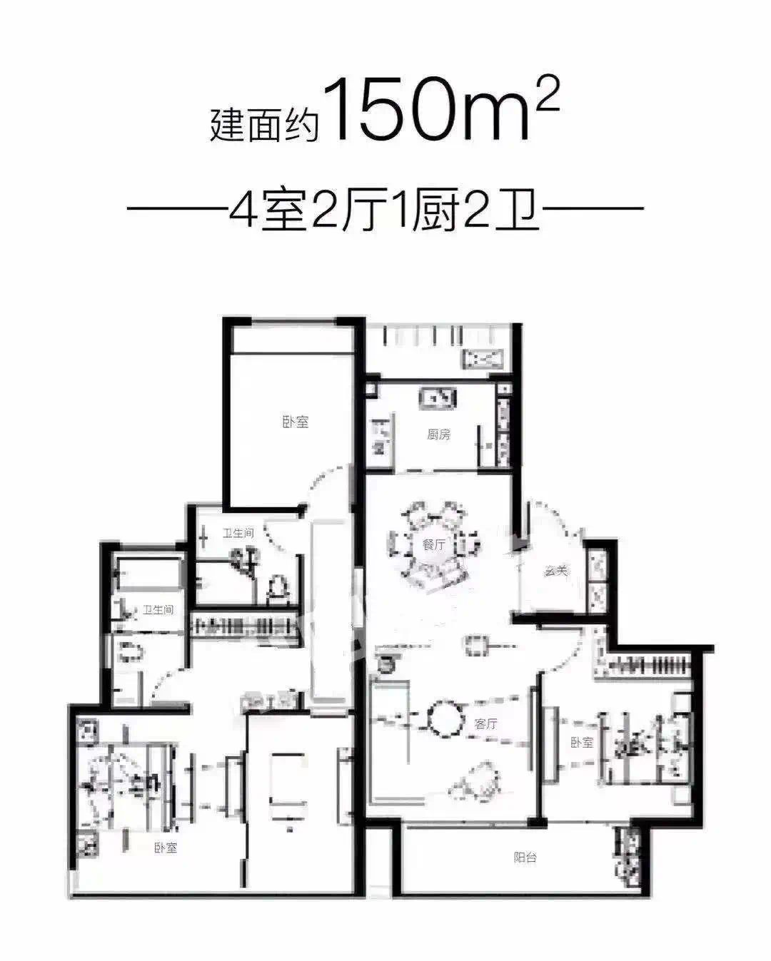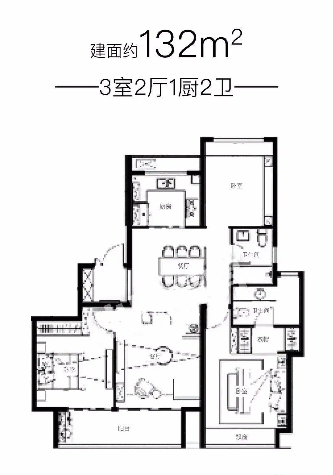 中皇·北岸锦源主力户型为约85-105㎡的2房和约140㎡的3房,精装修。
