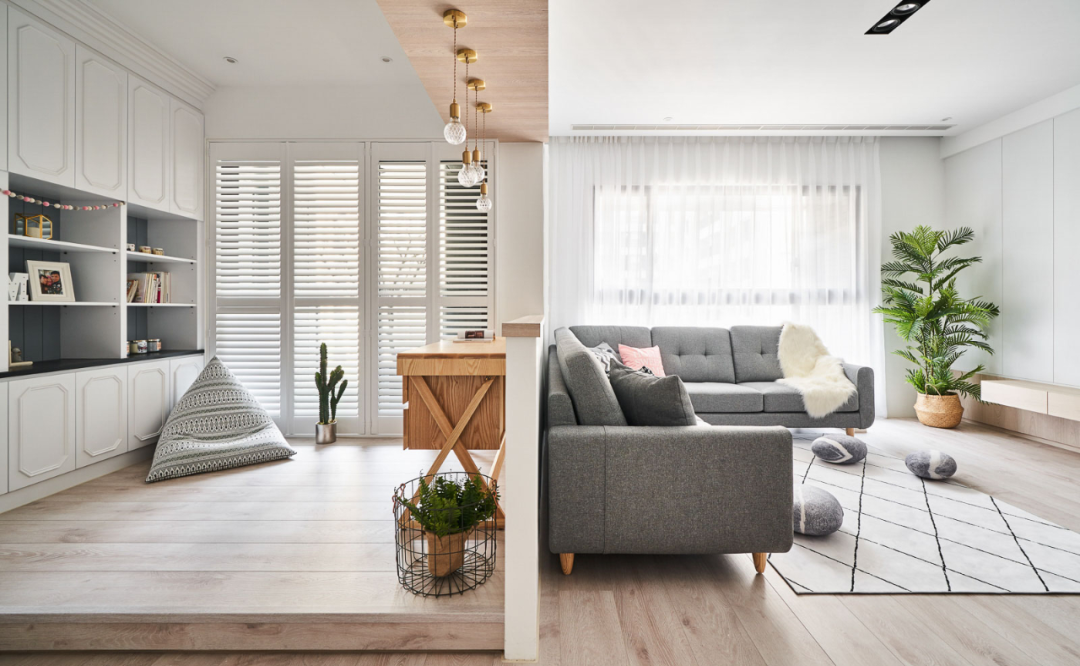 对于有些较大的户型,可以留给生活更多的想象空间,这时,我们会将客厅旁边的区域划分出来,留空。
