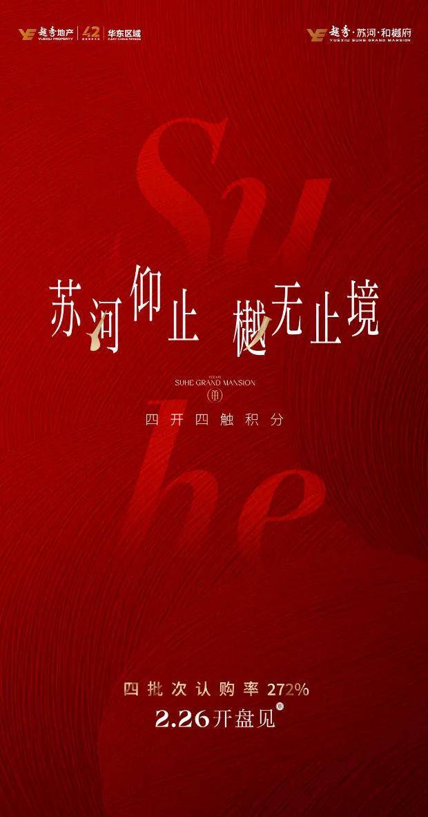刚刚结束认购的苏州河畔日光红盘【越秀・苏河・和樾府】传来消息,项目第四次触发积分,认购率超270%。