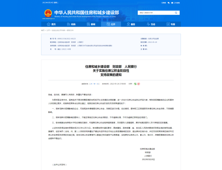 据住房和城乡建设部官网5月24日消息,住房和城乡建设部、财政部、人民银行发布关于实施住房公积金阶段性支持政策的通知。
