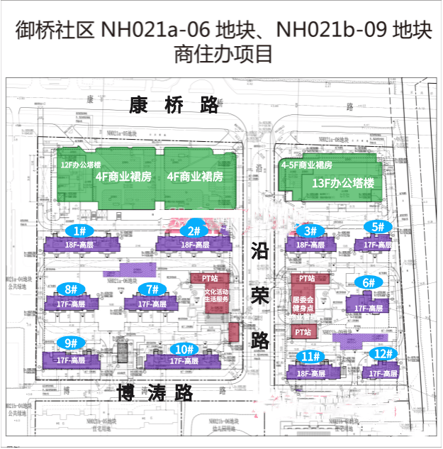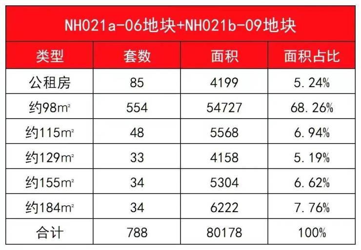 目前两个商品房地(即NH021a-06地块和NH021b-09地块)设计方案已经公示,根据设计方案显示,两个地块共拟建11栋17-18F高层住宅、1栋4-5F商业裙房、2栋12-13F办公塔楼以及部分配套用房,预计可售商品房约650套+。