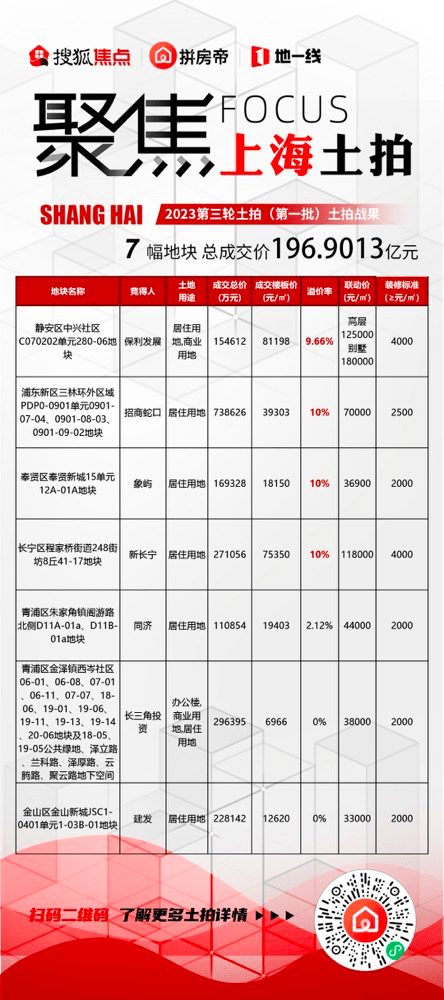 在此之前,上半场已完成7幅地块出让,4幅地块触顶摇号,1幅地块溢价成交,2幅地块底价成交,共计成交金额196.9013亿元。