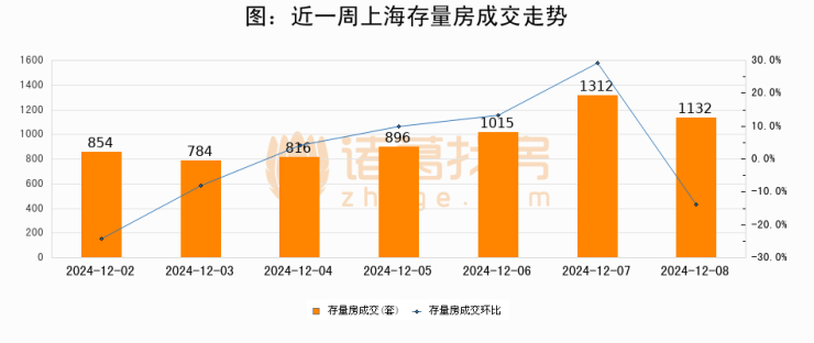 【上海成交日报】12月08日二手房1132套;涨价房源494套