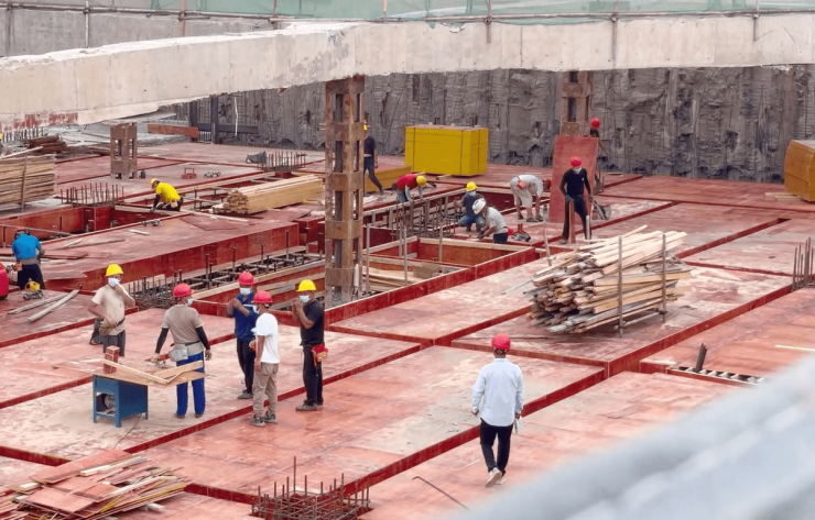 时值盛夏,上海已经连续数日经历高温炙烤,较高气温达40.9°C,追平了1873年以来的较高纪录,室外体感温度更是高达48℃!这无疑给房企的施工进程增加了一层新挑战,而在龙光天曜&蓝鲸世界工地现场,塔吊林立、设备轰鸣,百余名施工人员奋战一线,呈现出一派繁忙的景象。在这样的高温天气下,龙光天曜&蓝鲸世界合理安排、有序施工,各地块工程推进有条不紊,目前部分楼栋已经封顶。
