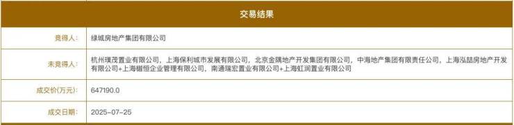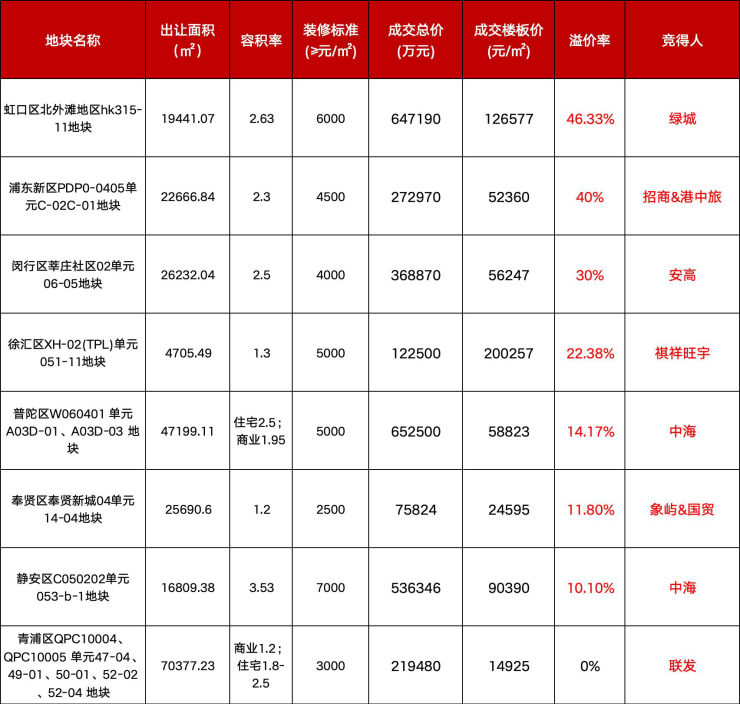 最终,绿城中国以64.72亿元竞得该地块,成交楼板价12.66万/㎡,溢价率约46.33%,不仅问鼎虹口地王,更是创下近年来上海公开土拍溢价率新高。