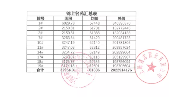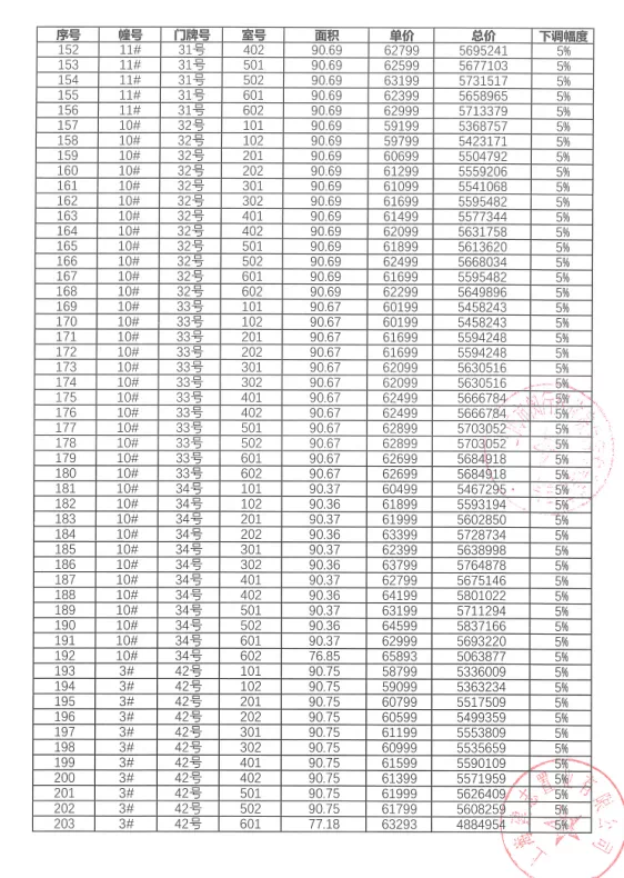 一房一价表: