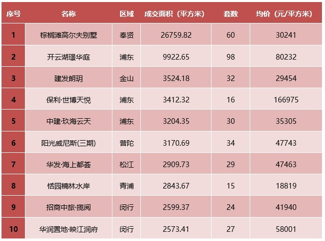 表:上海商品住宅成交TOP10(12.2—12.8)