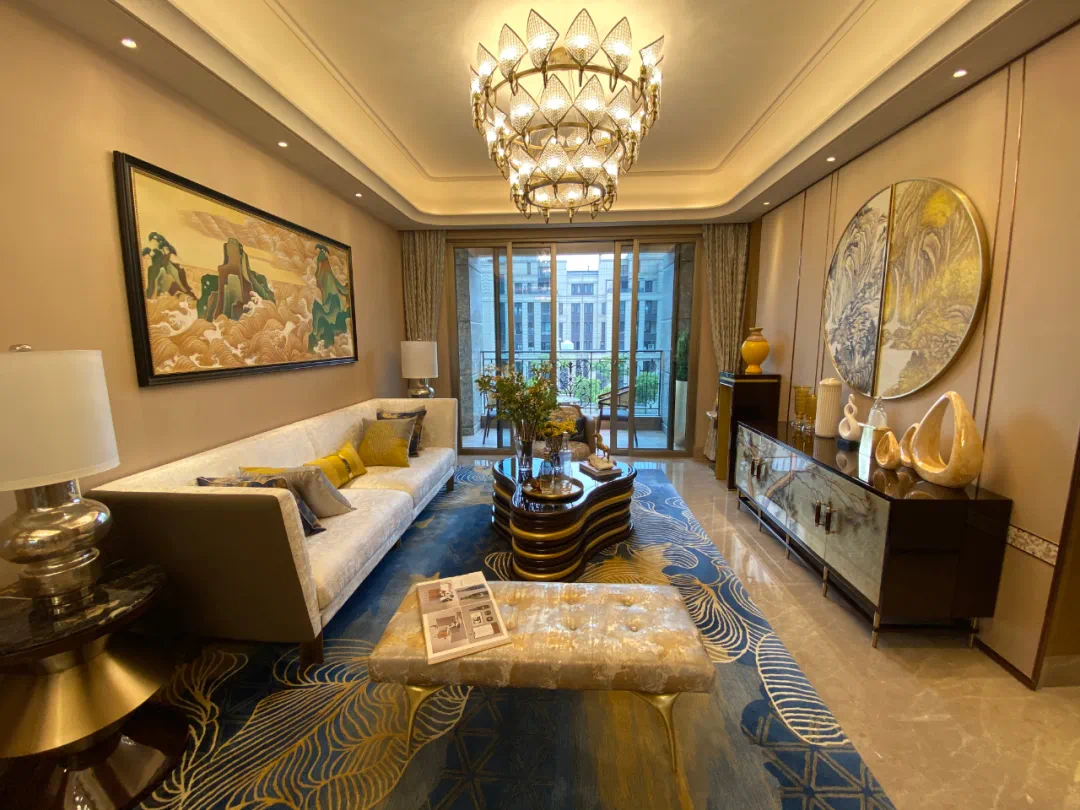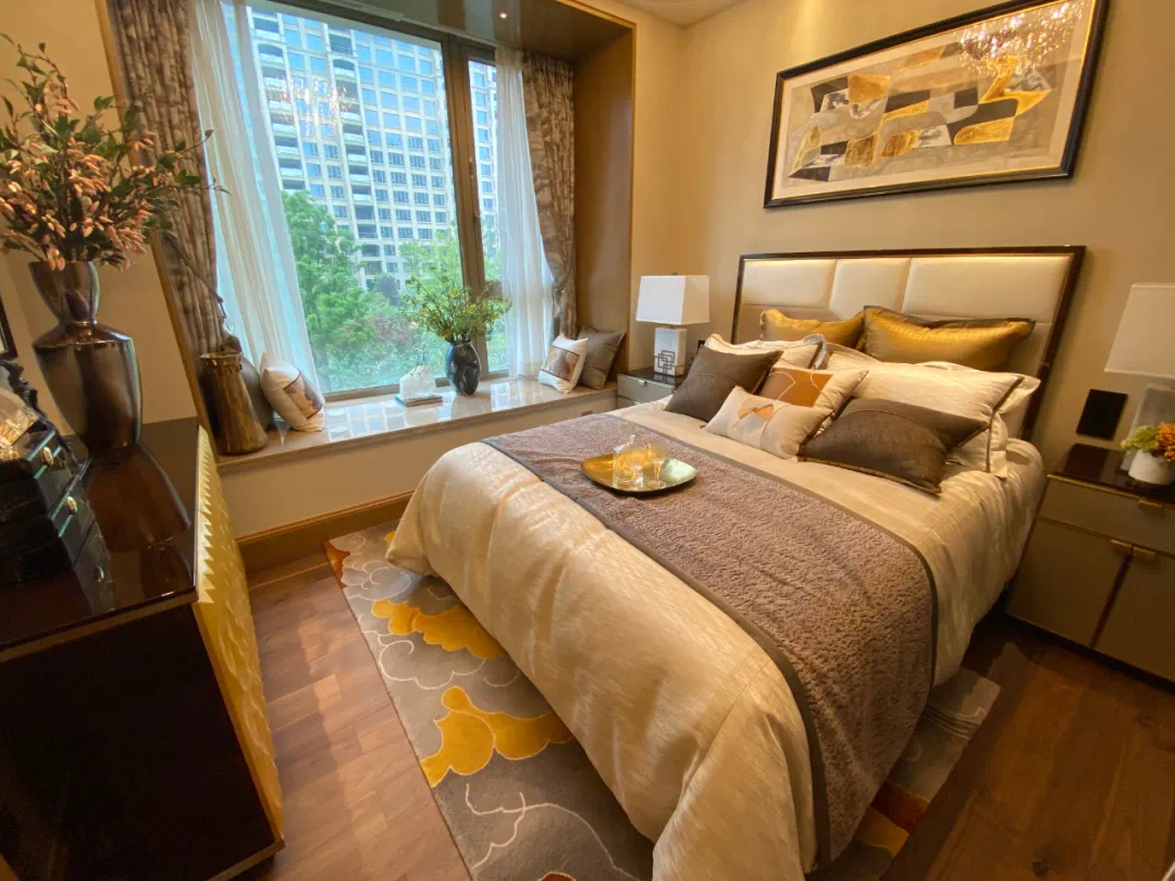 约156 m² 3+1室2厅2卫,南北通透,户型方正,双卧朝南,南北双阳台,动线清晰,并配置有多功能房,可以灵活作为书房或者保姆房。值得注意的是,该户型是森兰星河湾独推的稀缺“小户型”,可以说是“上车”星河湾的不二之选。 约156㎡4房样板房照片