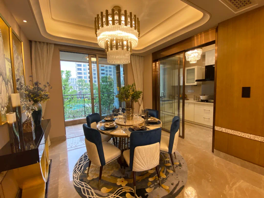 约184m² 4房,相比156m²多了一个卫生间,尺度更开阔。约184㎡4房样板房照片
