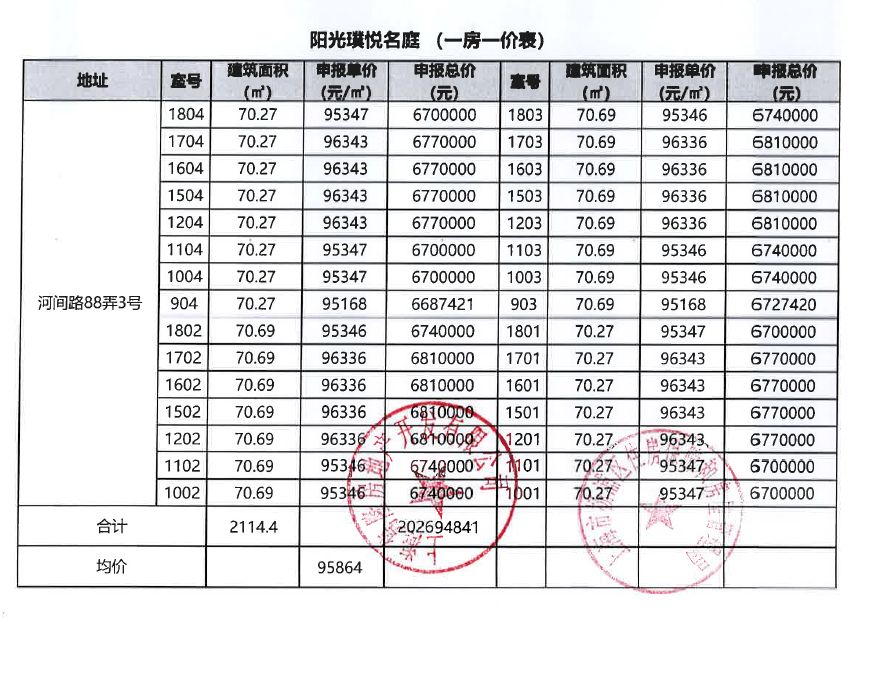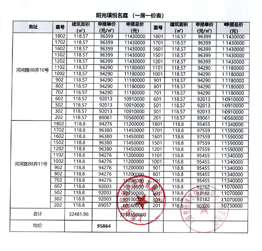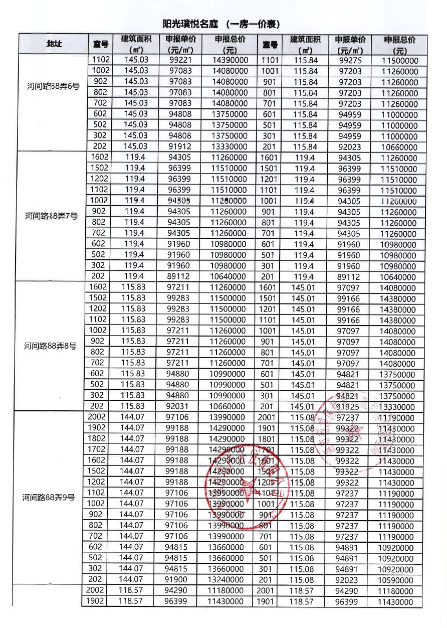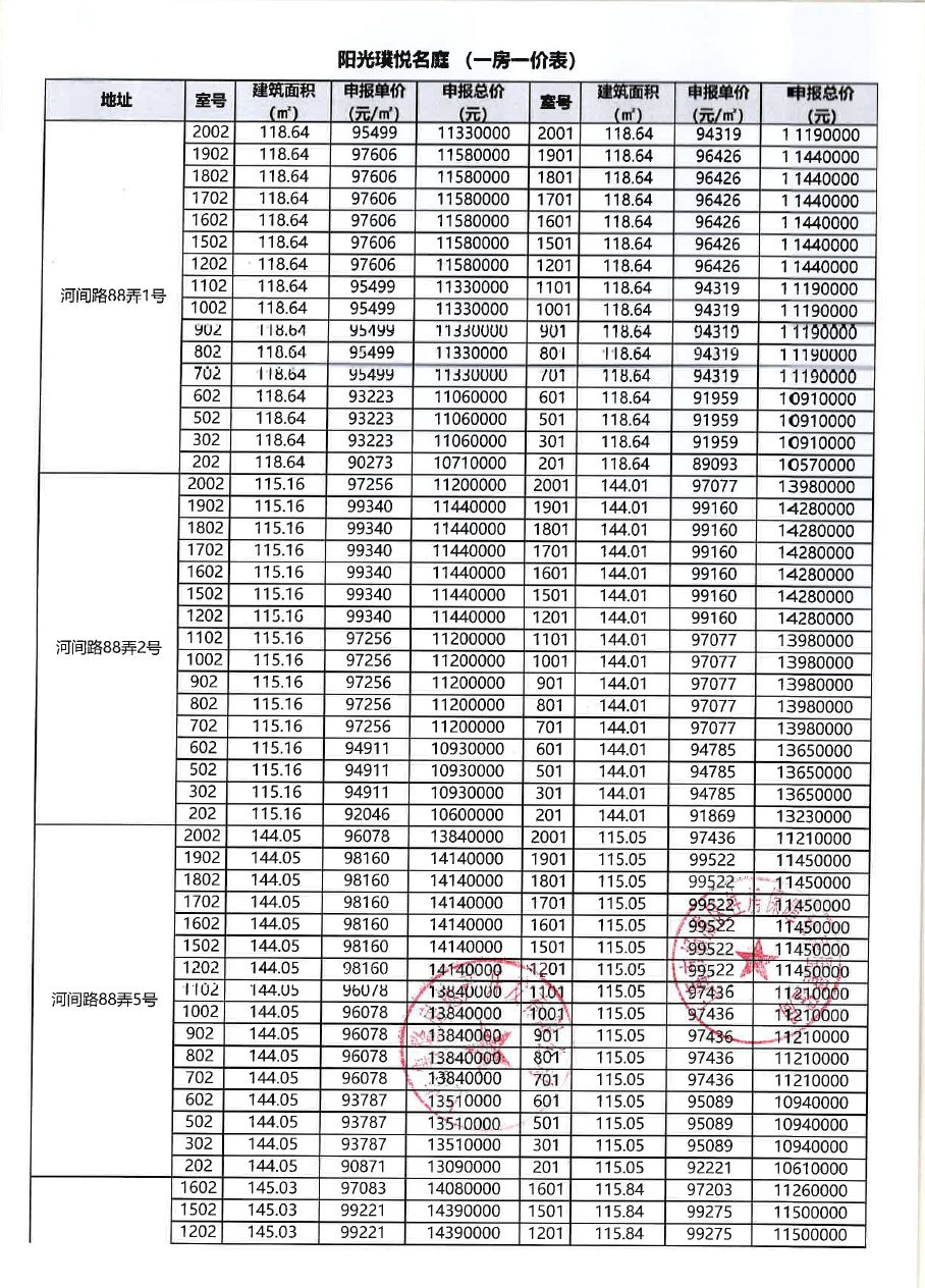 一房一价表(仅供参考)