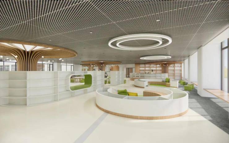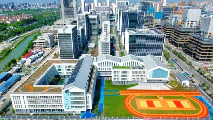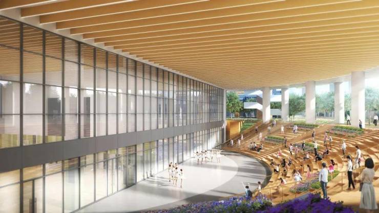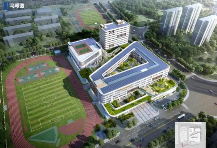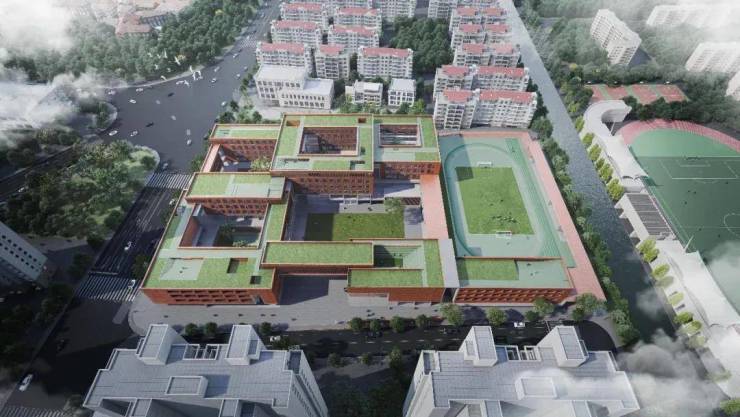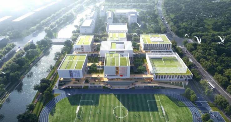 据悉,该项目总建筑面积46337平方米,学校将为学生打造一个集共享开放、生态自然、智慧低碳为一体的沉浸式学习环境,除常规的教学楼、多功能厅、学生宿舍等建筑外,项目还创新设计了屋顶空中操场,创造出多层次、开放性的校园空间。