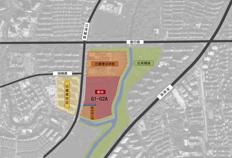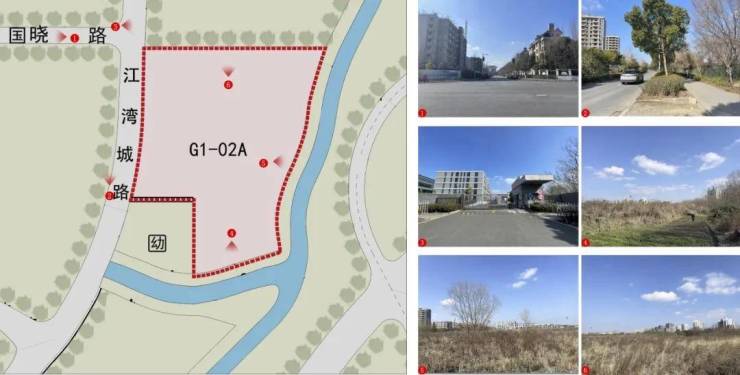 项目选址位于上海市杨浦区新江湾城G1-02A地块,东至 G1-03 公共绿地,南至 G1-02C 规划幼托用地和 G1-03 公共绿地,西至江湾城路,北至上海杨浦法国学校和上海杨浦德国学校。基地南、东濒临城市自然水系,西侧与云萃江湾小区隔路相望,周边配套设施完善,建设环境优良。