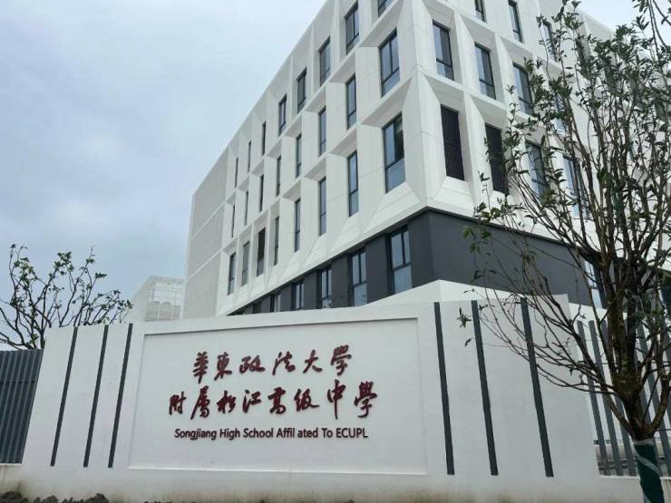 华东政法大学附属松江高级中学于2022年创办,为全日制公办高级中学,学校紧靠松江大学城,毗邻广富林遗址公园,2025年上半年建成。办学规模为30班精品化高中,此前借址九峰实验学校办学。