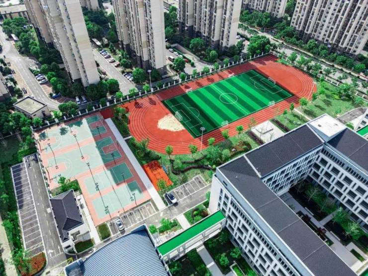 学校总建筑面积25535.3平方米,校舍以“高开放、高互动、高自由”为主轴,打破教室的固有格局和边界,50余个大小空间穿插折叠。建有健康中心、餐厅、图书馆、恒温游泳馆等八大成长支持设施,下沉式非遗工坊、STEAM实验室、创客中心、人工智能中心等八大课程空间,每个年级特设跨班级融合教室、儿童活力客厅。