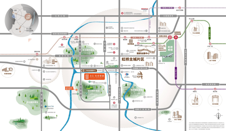 东有陆家嘴,西有大虹桥。时代当下,上海发展西进,长三角一体化已上升为国家战略,大虹桥正展现出比肩陆家嘴的旭日雄心。未来的虹桥将建设成为集国际会展、国际高端商业、国际商务、国际贸易、文化娱乐、中高端住宅等功能为中心的功能区域,更是一座高级的商务中心,虹桥与浦东将形成上海的双引擎,带动上海及长三角经济的新一轮腾飞。而项目位于大虹桥主城片区,它是青浦区“一城两翼”重大发展战略“东翼”的承载者,也是面向世界的新名片。