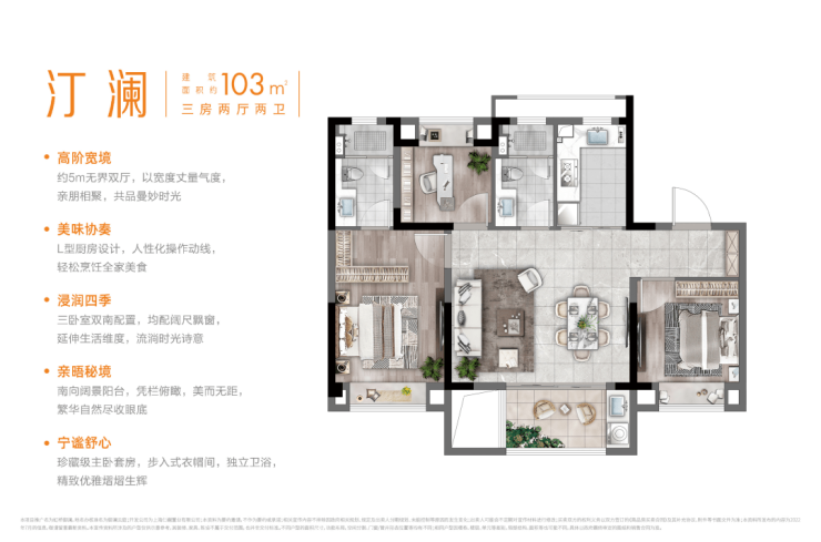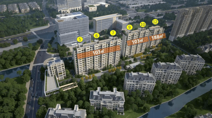 小区建筑面积2.78万方,容积率1.6,车位配比1:1.25。由4栋(三栋商品房及一栋保障房)10-13层的小高层组成,产品为建筑面积约103平米精雅三房两厅两卫,全系精装交付。