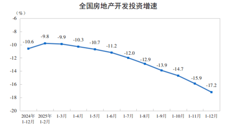 2025年,全国房地产开发投资82788亿元,比上年下降17.2%(按可比口径计算,详见附注6);其中,住宅投资63514亿元,下降16.3%。
