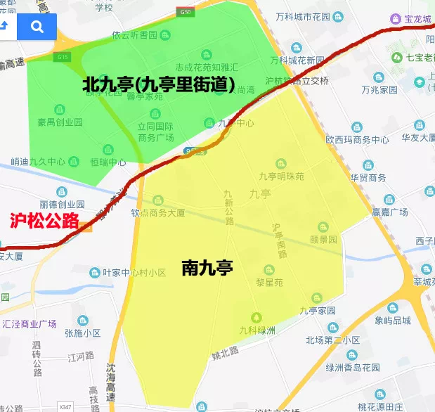 整个九亭以沪松公路为界限,分为南九亭和北九亭(现名为九亭里街道)。