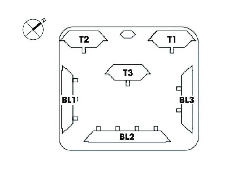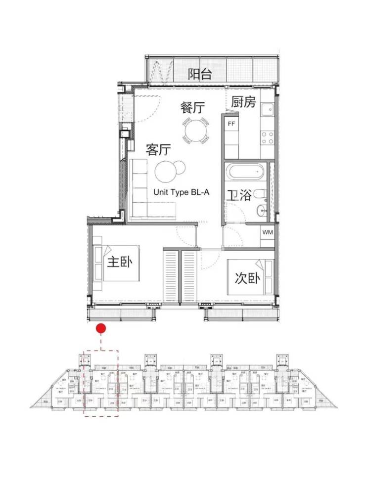 BL1、BL2、BL3三幢以小户型为主。BL1三梯六户、BL2四梯八户、BL3两梯四户。