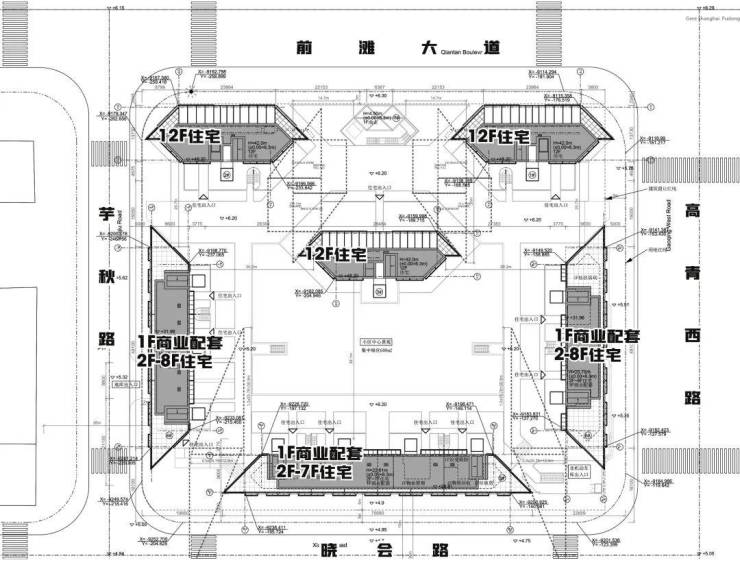 前滩九宫格,格力浦江壹号八批次已过会,建面约76-555㎡公寓,均价12.98万/㎡。