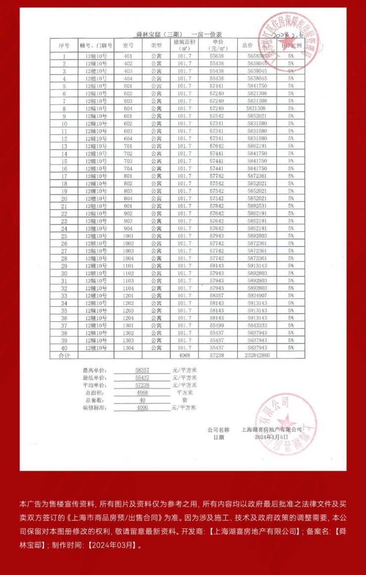 一房一价表:
