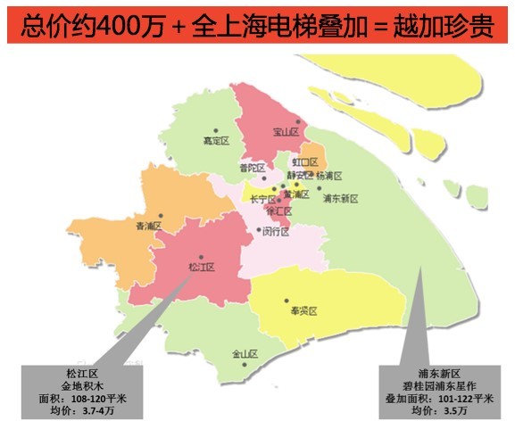 纵观全上海,总价约400万的选择表面上看起来很多,其实不然。大体分三种:排名前列种为外环以内的老公房,户型面积小居住舒适度极低;第二种外环以外的高层公寓,户型面积稍大,居住舒适度一般;第三种外环以外的电梯叠加,居住面积大环境优美,且未来规划以新城和副中心为主,升值潜力强劲,成为2017年年中置业上海的上上之选。