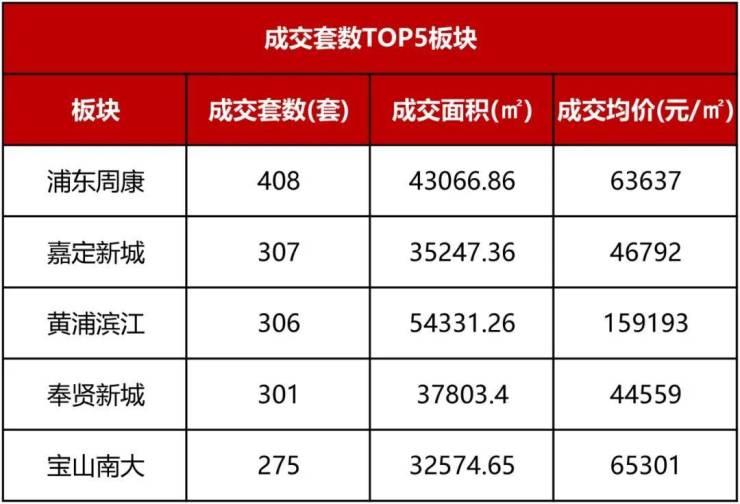 上海中原地产统计数据显示,新政发布后一个月(9.30-10.29)期间,成交套数TOP5板块分别为:浦东周康、嘉定新城、黄浦滨江、奉贤新城、宝山南大,多为外环外区域。