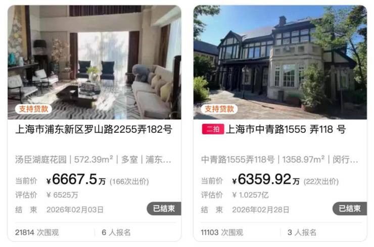 2月正值春节长假,上海楼市整体表现放缓,但在法拍房市场上,两套总价超过6000万元的独栋别墅引发关注,成为当月市场的亮点。