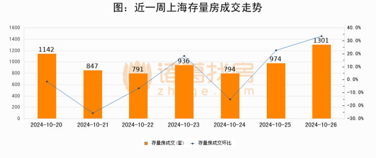 【上海成交日报】10月26日二手房1301套;涨价房源123套
