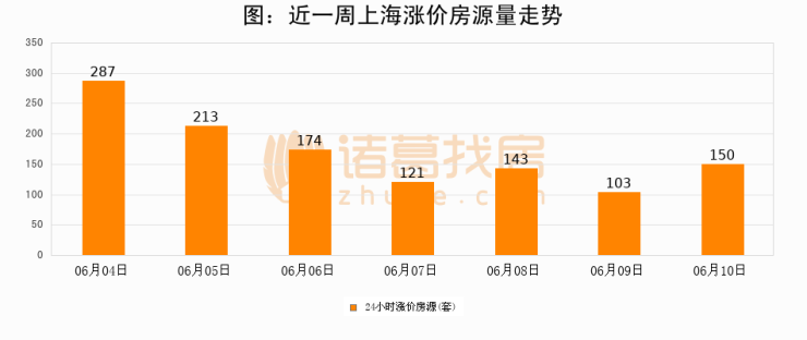 根据诸葛找房数据显示,上海24小时涨价房源量为150套,较06月09日增加47套,环比上涨45.6%。与此同时,涨价房源占比小幅扩大,业主信心有所提升。