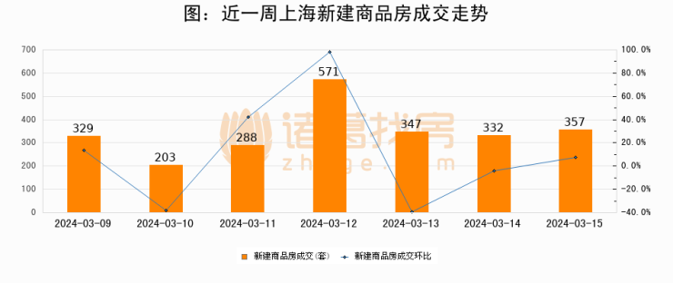 【上海成交日报】03月15日新房成交357套;涨价房源243套