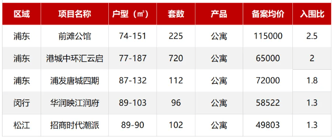 具体来看,浦东上新3盘,分别为全新盘陆家嘴前滩公馆,过会均价11.5万/㎡,港城中环汇云启一次性推出720套房源,均价6.5万/㎡,浦发唐城三期刚刚开过盘,四期就宣布过会,均价7.2万/㎡;