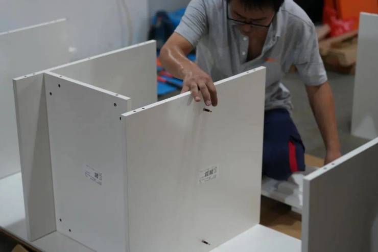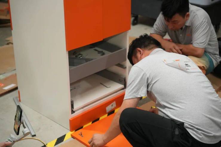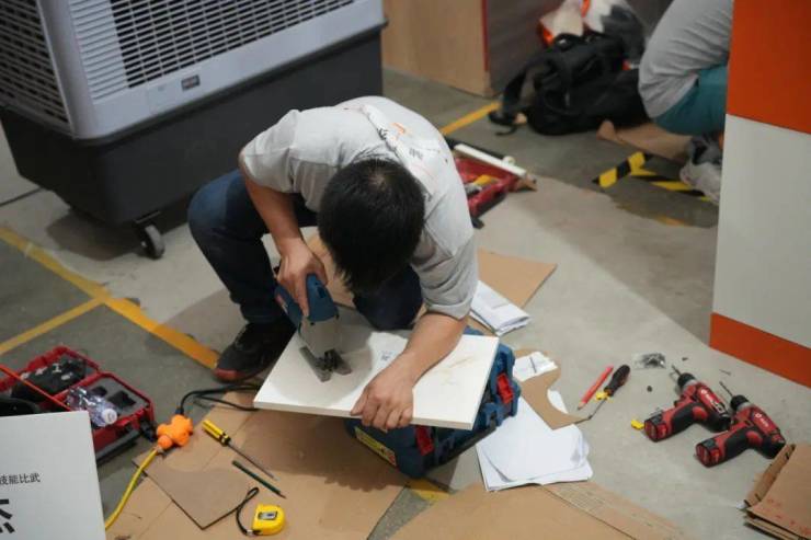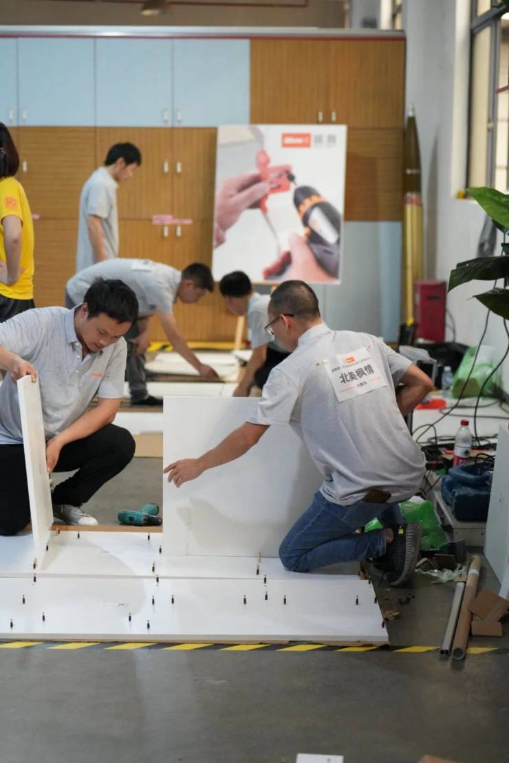 比赛开始,安装师傅都以最快的速度拼装柜体,熟练程度可见一斑,也为后面的精准安装赢得更多的时间。