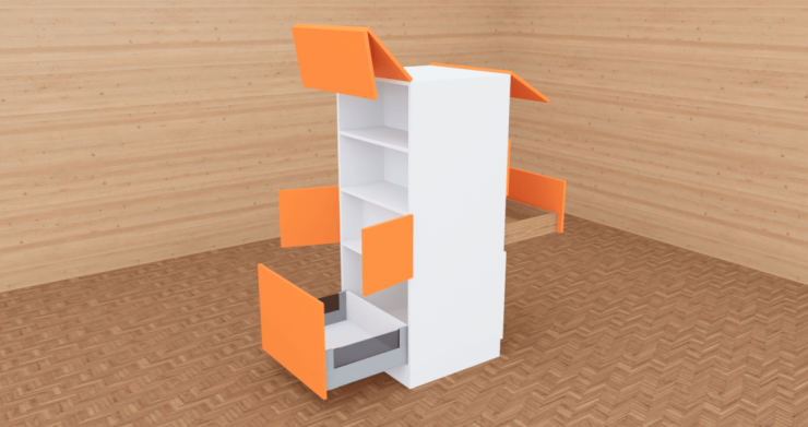 本次安装大赛的考题:除了有Blum 百隆经典产品AVENTOS 爱翻®上翻门系列和TANDEM 隐藏静音木抽导轨系列,还有抽屉家族的新成员MERIVOBOX魅宝®金属抽屉系列。主要考察选手在有限时间内进行图纸审阅、板材S线切割、定位打孔、柜体连接、五金件(包括上翻门系列、铰链门(含碰碰开)、子母抽安装调试等定制家居安装技能。