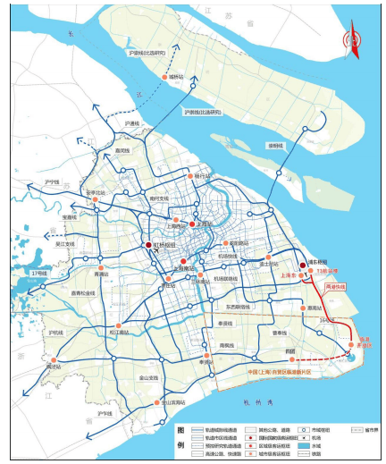 东方枢纽上海东站将通过上海机场联络线与上海虹桥站连接,并接入两港快线(南汇支线)、铁路东西联络线等线路,搭建“5条市域铁路+2条市区线+多条局域线”的布局。
