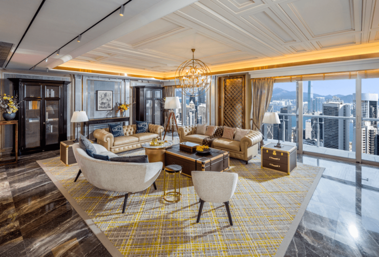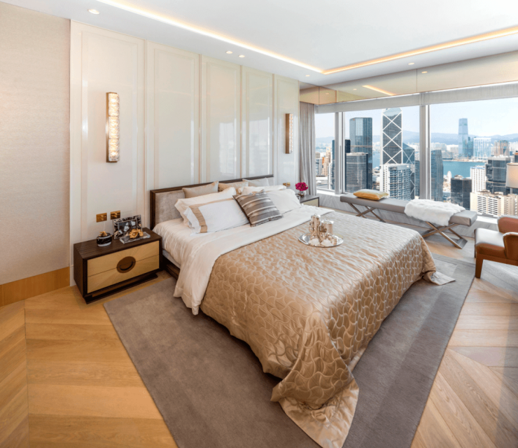 标准户的室内楼板之间距离约3.15米,多的不仅是采光,更是一种睥睨港岛繁华的视野。整面落地窗,将中环繁华、维港璀璨,不动声色引入室内。