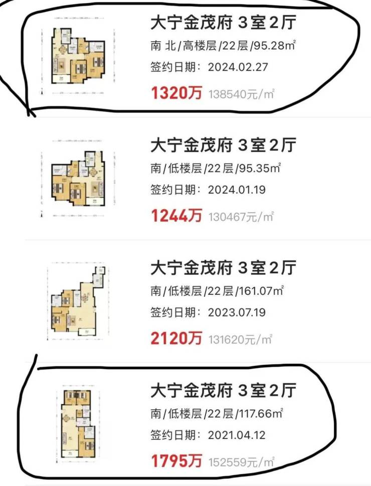 二手房方面,就算该幅地块联动价涨到11万/平,也极具优势,比如标杆小区大宁金茂府,即便市场行情下行,该小区二手成交价依旧保持在接近14万/平的售价,若放在行情好的时候,超过15万/平的成交价也比比皆是!