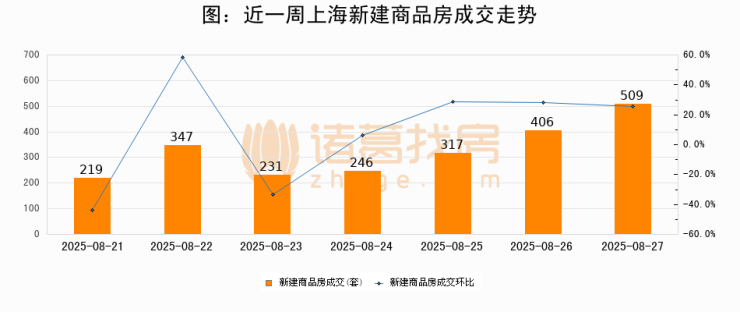 【上海成交日报】08月27日新房成交509套、二手房581套;涨价房源127套