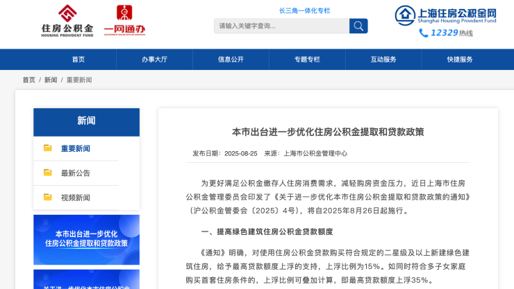 为更好满足公积金缴存人住房消费需求,减轻购房资金压力,近日上海市住房公积金管理委员会印发了《关于进一步优化本市住房公积金提取和贷款政策的通知》(沪公积金管委会〔2025〕4号),将自2025年8月26日起施行。