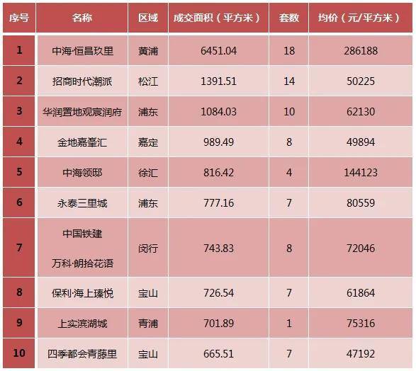 从交易格局来看,中高端改善产品依旧活跃。成交面积前十榜单中6万元/平方米以上的楼盘有7个,包括2个10万+楼盘。值得关注的是,淮海中路板块的中海项目,其风貌别墅项目上周签约18套,均价为28.62万元/平方米,榜单中排名第一。另一个10万+楼盘是龙华板块的中海领邸,网签4套,均价为14.41万元/平方米。