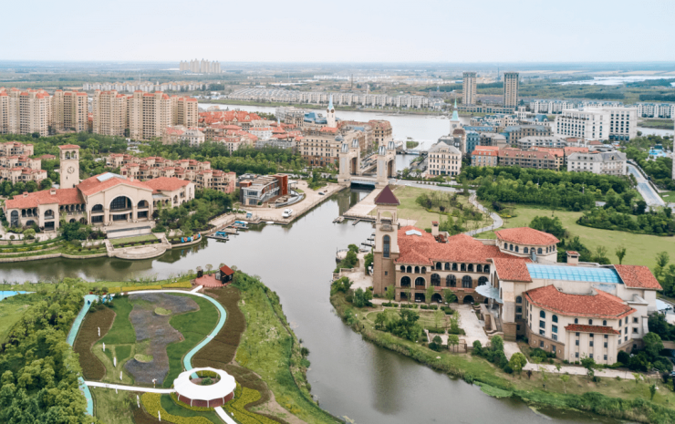 作为崇明岛规划面积排名前列的项目,绿地长岛约2.23万亩磅礴体量。整岛开发,横跨17公里,相当于两个老静安区的大小,涵盖住宅、商业、酒店、学校、医院等多种业态,是集商、住、游、旅、购为一体的国际化岛居度假胜地。整个项目总投资高达2000亿,总体开发周期10年。