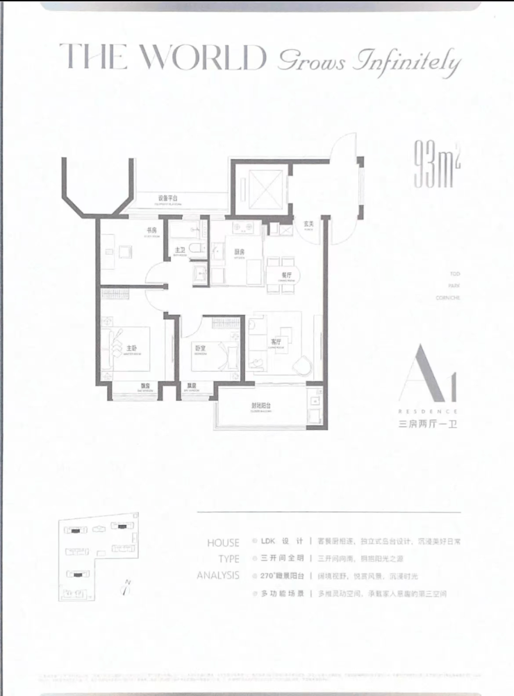 建面约93㎡3房2厅1卫