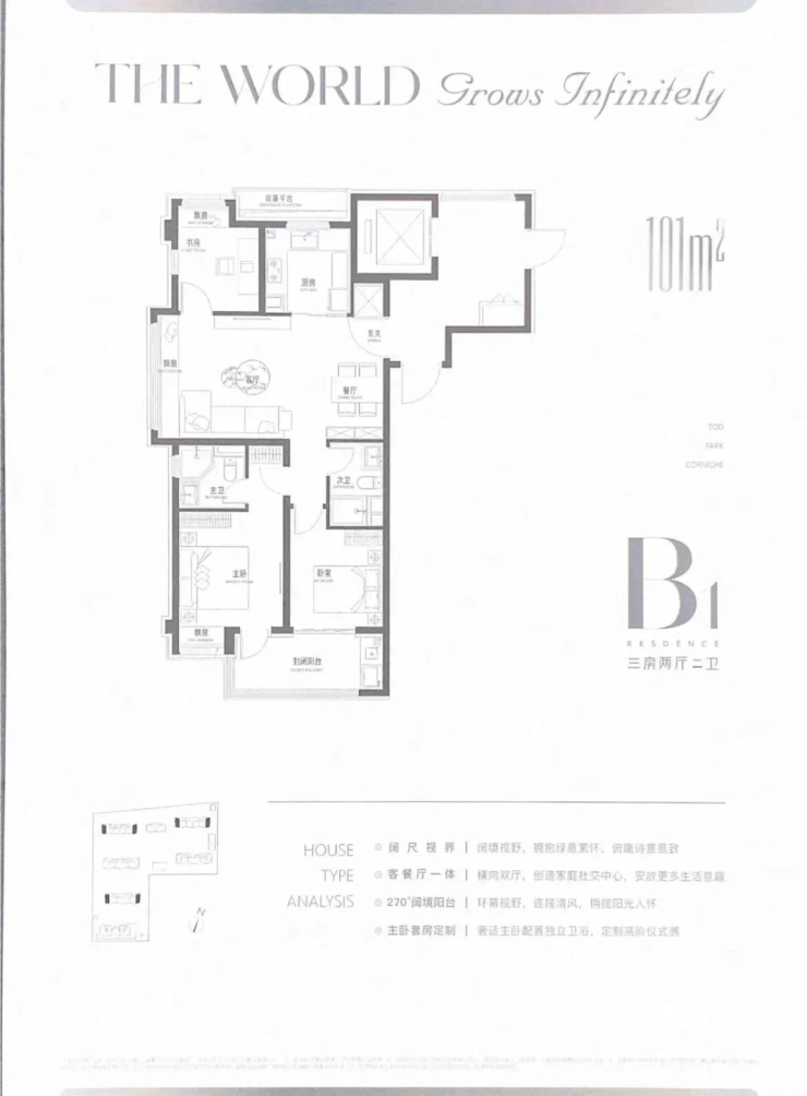 建面约101㎡3房2厅2卫