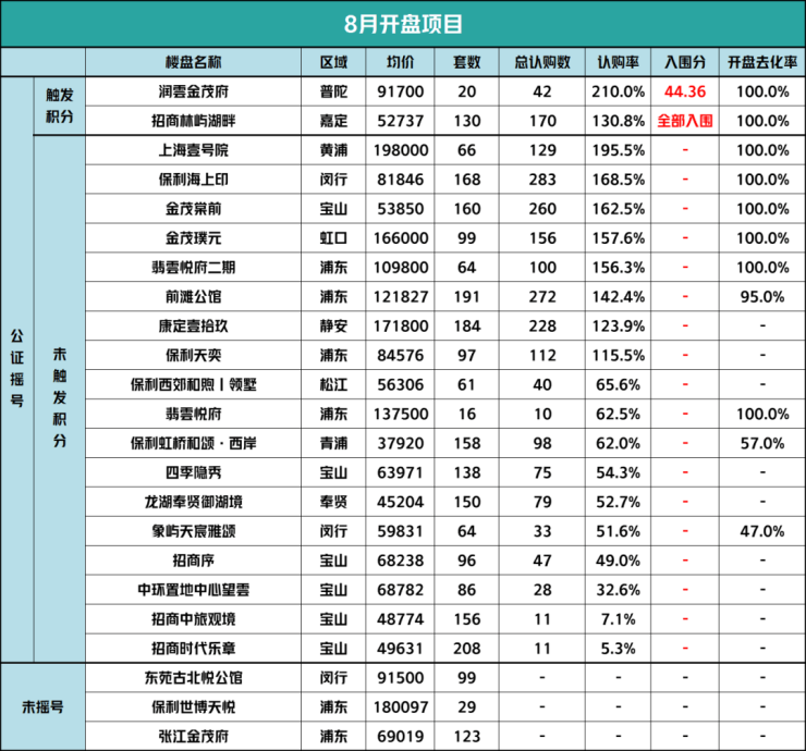 8月上海23个新盘入市!仅2盘触发积分,另有3盘未摇号!