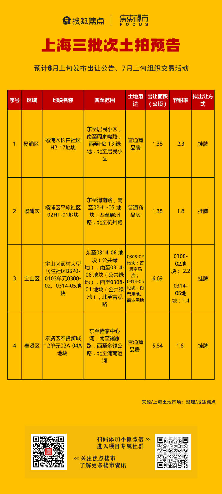 上海三批次土拍预告发布:4幅纯宅地拟于7月上旬开拍