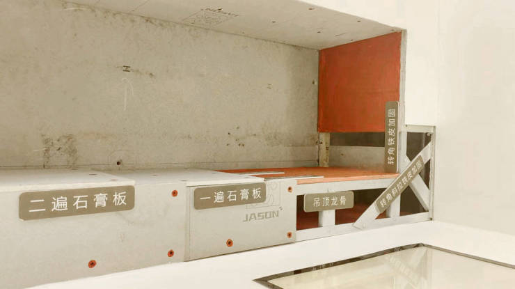 在地面平整工艺处理上,大华引入瓷砖找平“神器”——调平器,确保墙地面平整的同时,避免空鼓开裂,经得起全方位“无死角”的考验。吊顶则利用仪器精密放线确保吊顶标高统一、采用轻钢龙骨新型材料避免变形、转角铁皮加固三大工艺体系确保吊顶的平整、牢固。