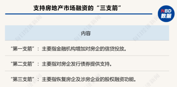 除“三支箭”支持房地产企业融资加力,地产信贷投放渠道还包括,加大保交楼金融支持,推动行业并购重组,积极服务保障性住房等“三大工程”建设。