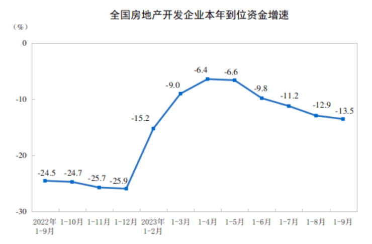 从房企今年的经营情况来看,国家统计局数据显示,今年1-10月,房企到位资金同比减少13.8%,其中国内贷款同比下降11.0%,自筹资金(主要是发债融资)同比下降21.4%。